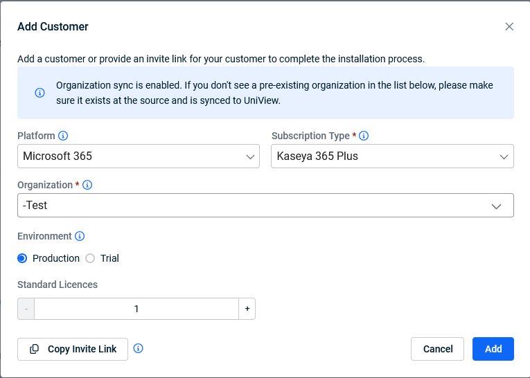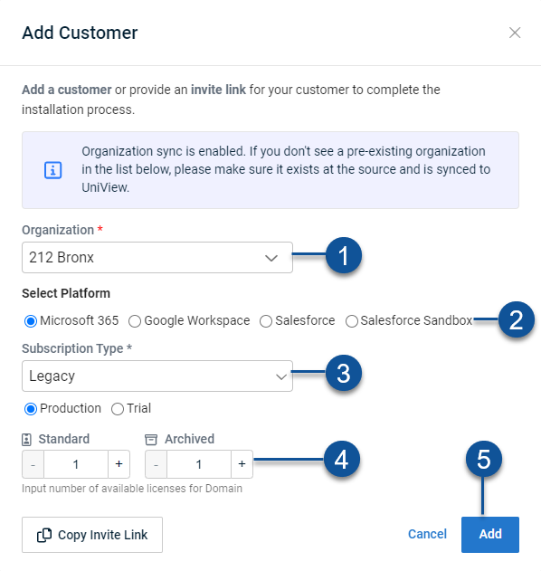 Then, use the Copy Invite Link option to send the Global Administrator a link they can use to complete the integration.