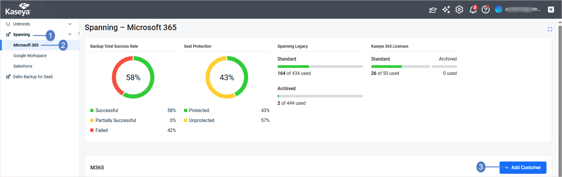 - In the left navigation menu, click Spanning, then Microsoft 365.